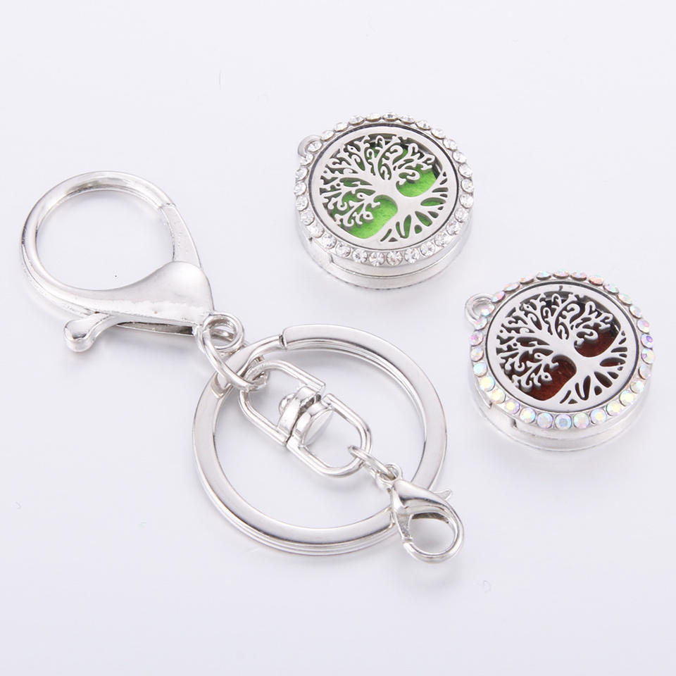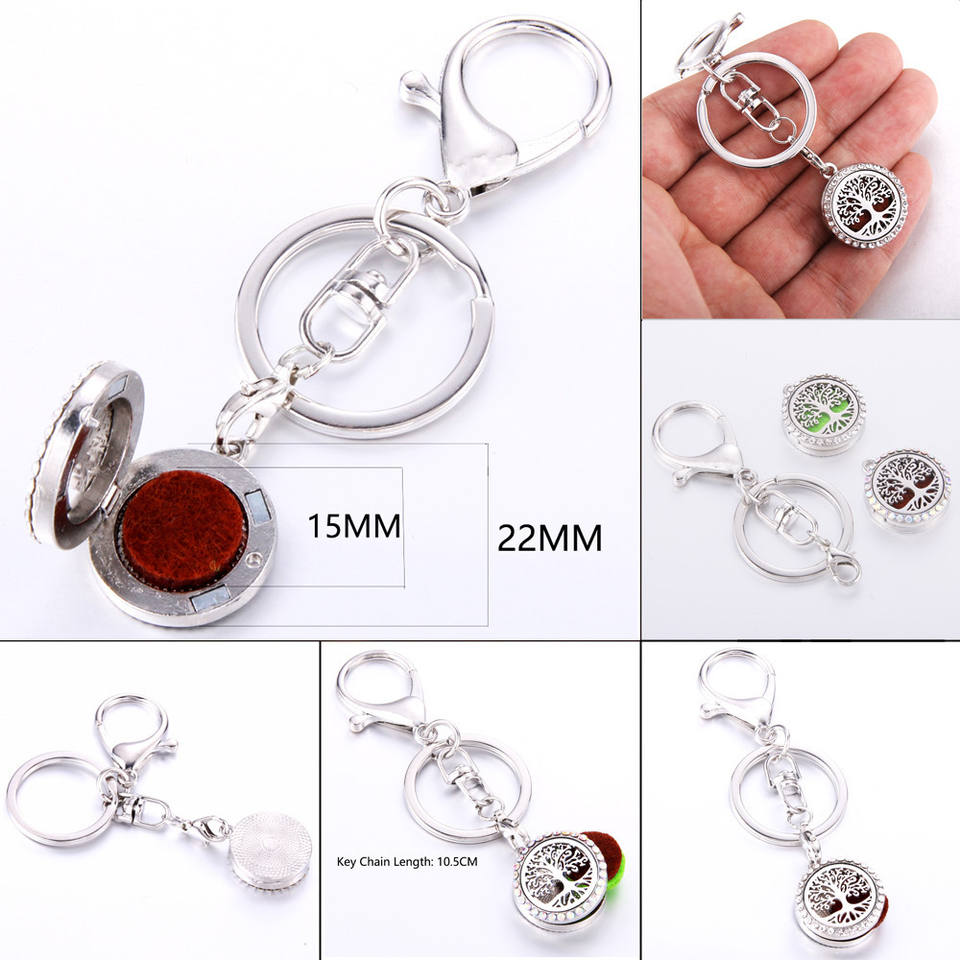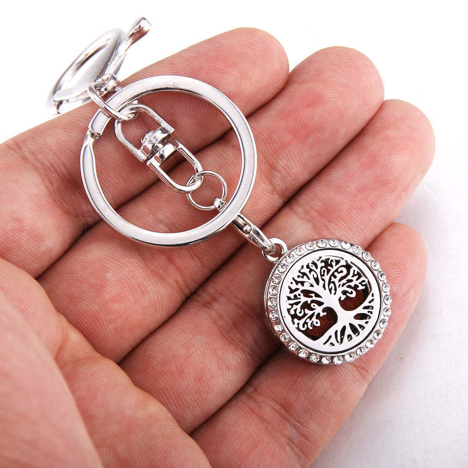 Delicado Difusor de Aceites Esenciales Ajustable de Acero Inoxidable con Diseño de Árbol de la Vida para Aromaterapia y Perfume, Llavero DIY