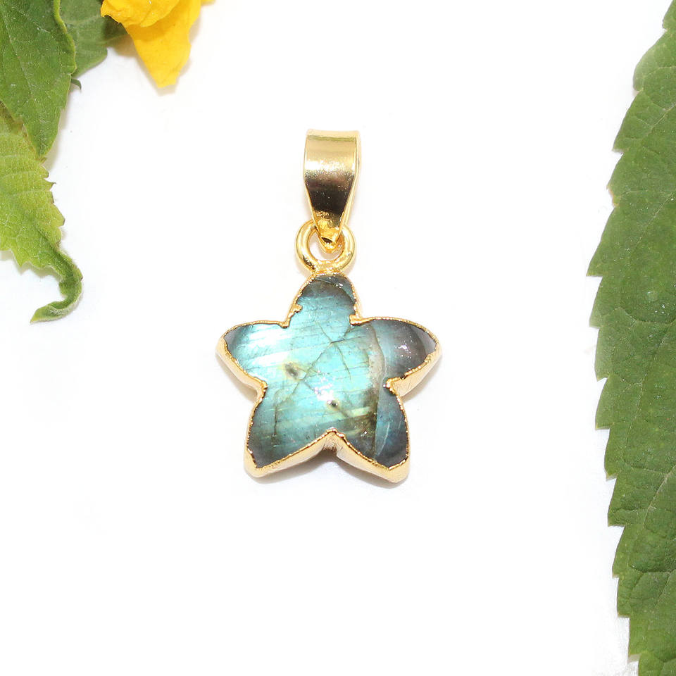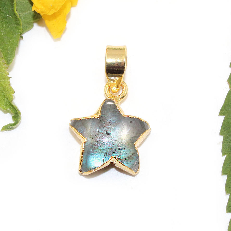 Delicada moda estrella forma labradorita piedra colgante 18K oro galvanizado joyería para mujeres niñas fábrica al por mayor a granel