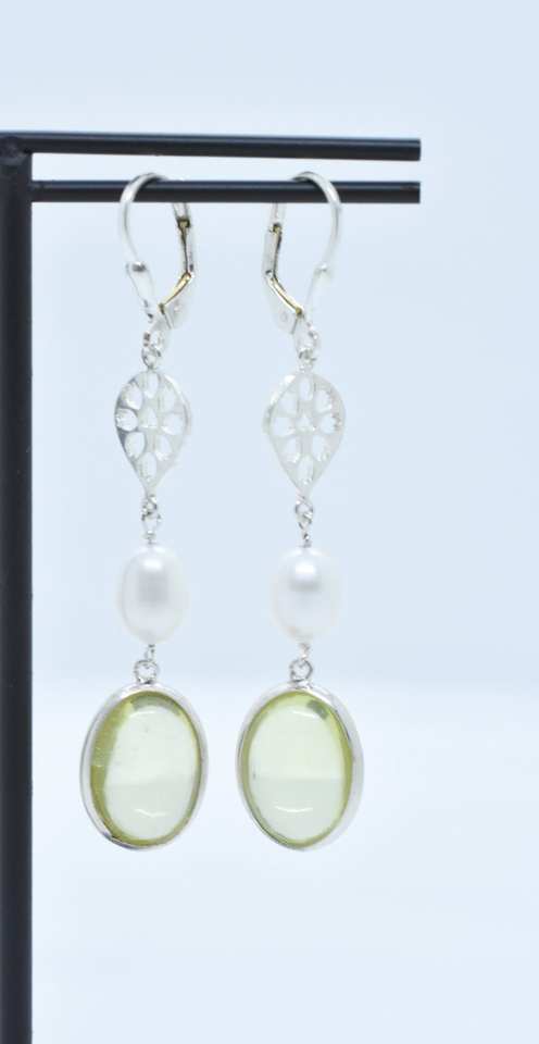 Nombre del producto:Pendientes de cuarzo de limón y perlas blancas