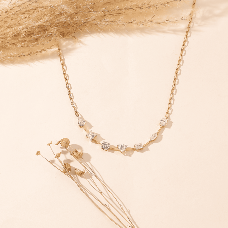 Delicado Collar de Novia Moderno con Diamantes de Múltiples Formas, Elegante Joyería de Diseño para Mujer