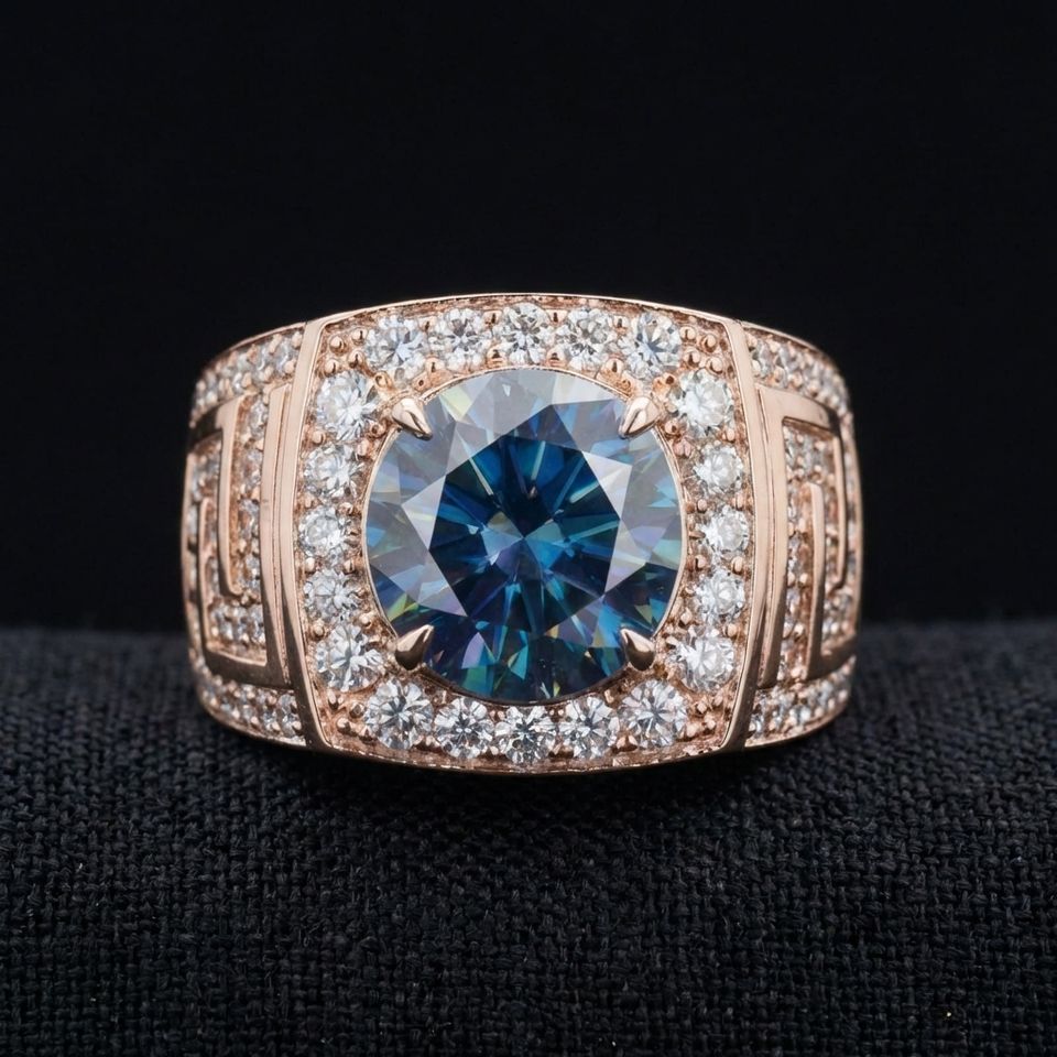 Diamante Central:Solitario de corte redondo azul intenso elegante de 4,5 quilates