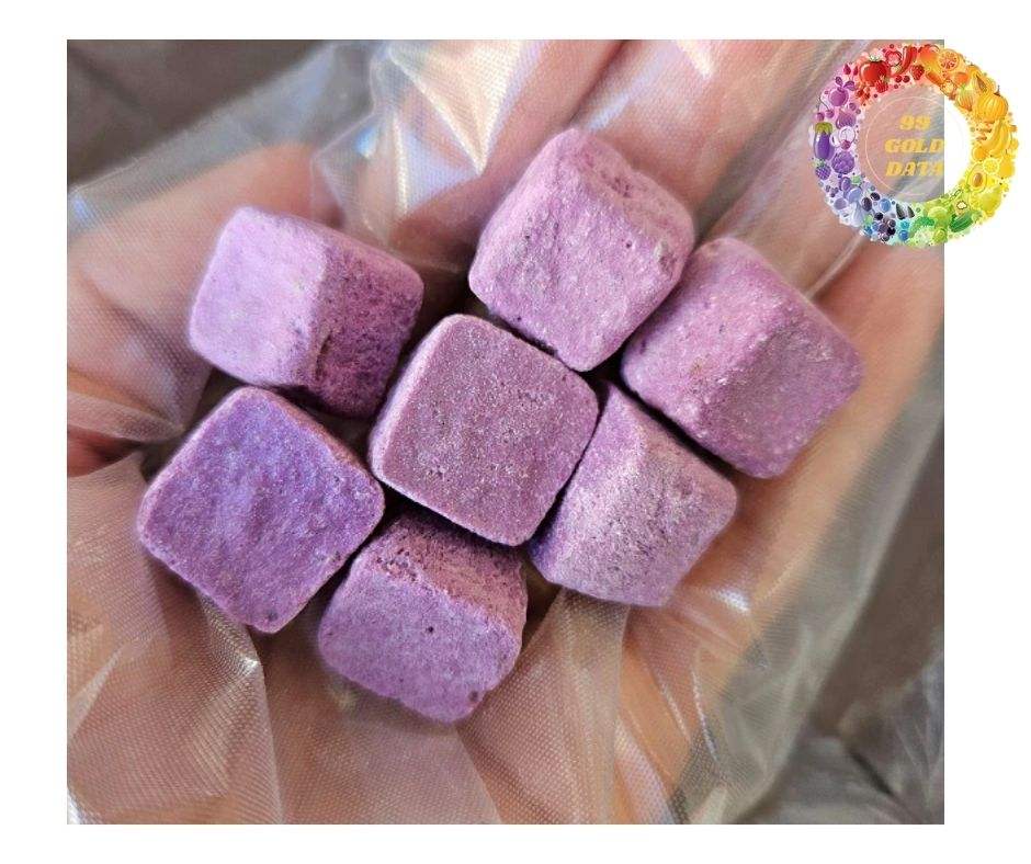 Deliciosos cubos de yogur liofilizado con mezcla de frutas, fresa, arándano, mango, dulces y crujientes.
