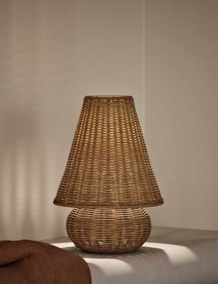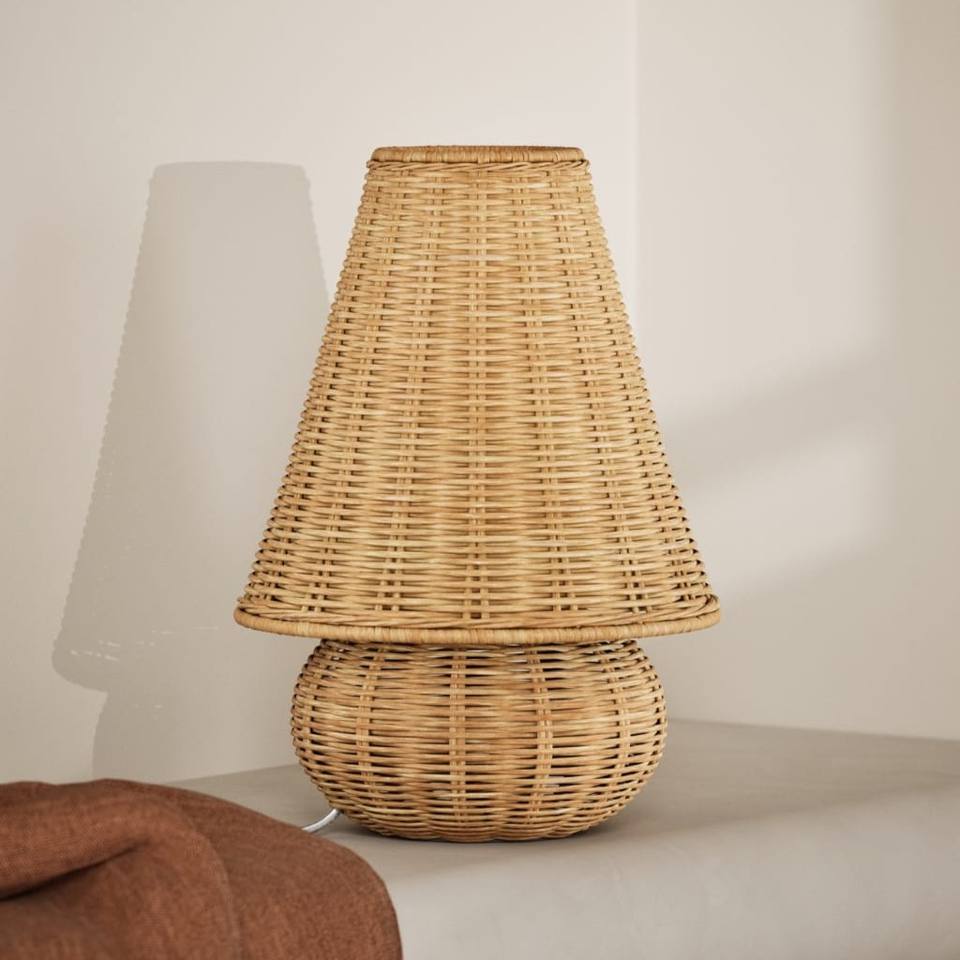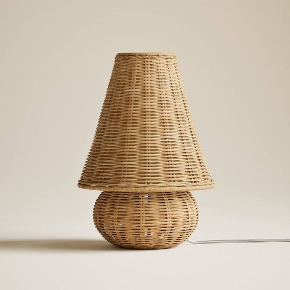Encantadora lámpara de mesa de ratán, lámpara de noche tejida en Color Natural, lámpara de mesita de noche de mimbre bohemio para sala de estar y dormitorio