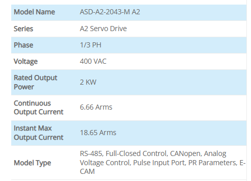 Controlador de Motor de Bucle Cerrado Delta ASDA-A2 Serie ASD-A2-2043-M 2kW AC Servo Drive 400V CANopen USB