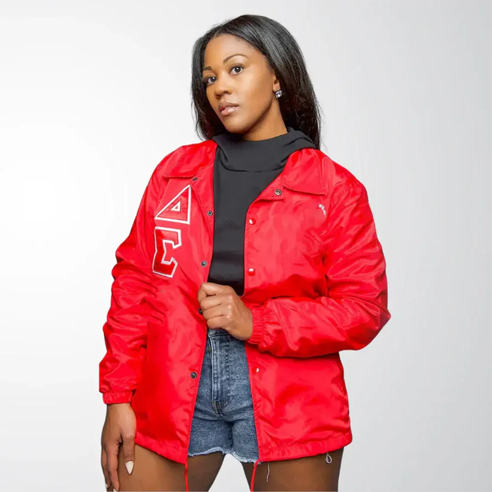 Chaqueta Delta Roja y Negra, Chaqueta Deportiva DST, Chaqueta Cortavientos Sorority, Cuello Alto, Personalizada, Negra con Frente Rojo, Impermeable