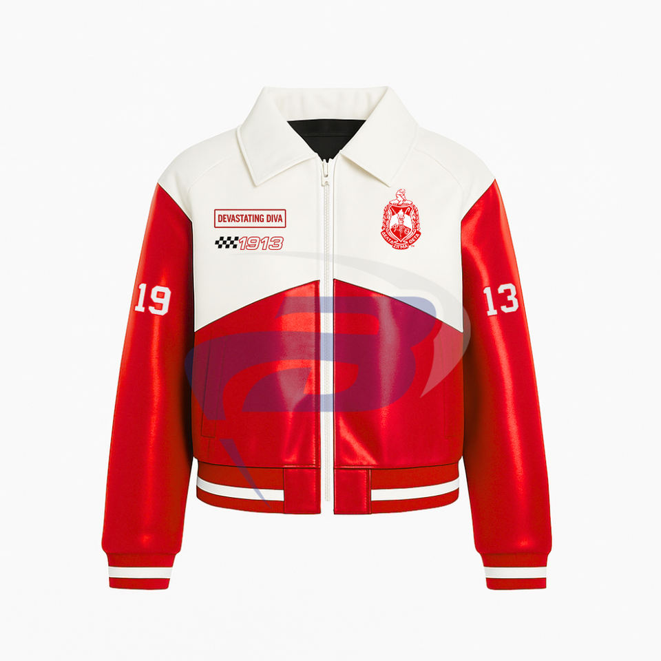 Delta | Sigma | Chaqueta de Carreras Theta DST Sorority con Cierre de Cremallera, Chaqueta de Carreras Personalizada con Patrón de Llamas de Algodón de Alta Calidad