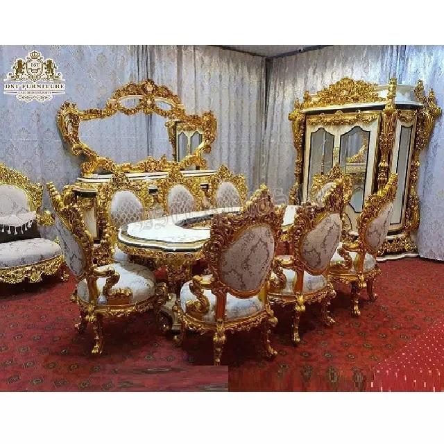 Juego de mesa de comedor de madera de teca de diseño barroco de lujoNombre del producto