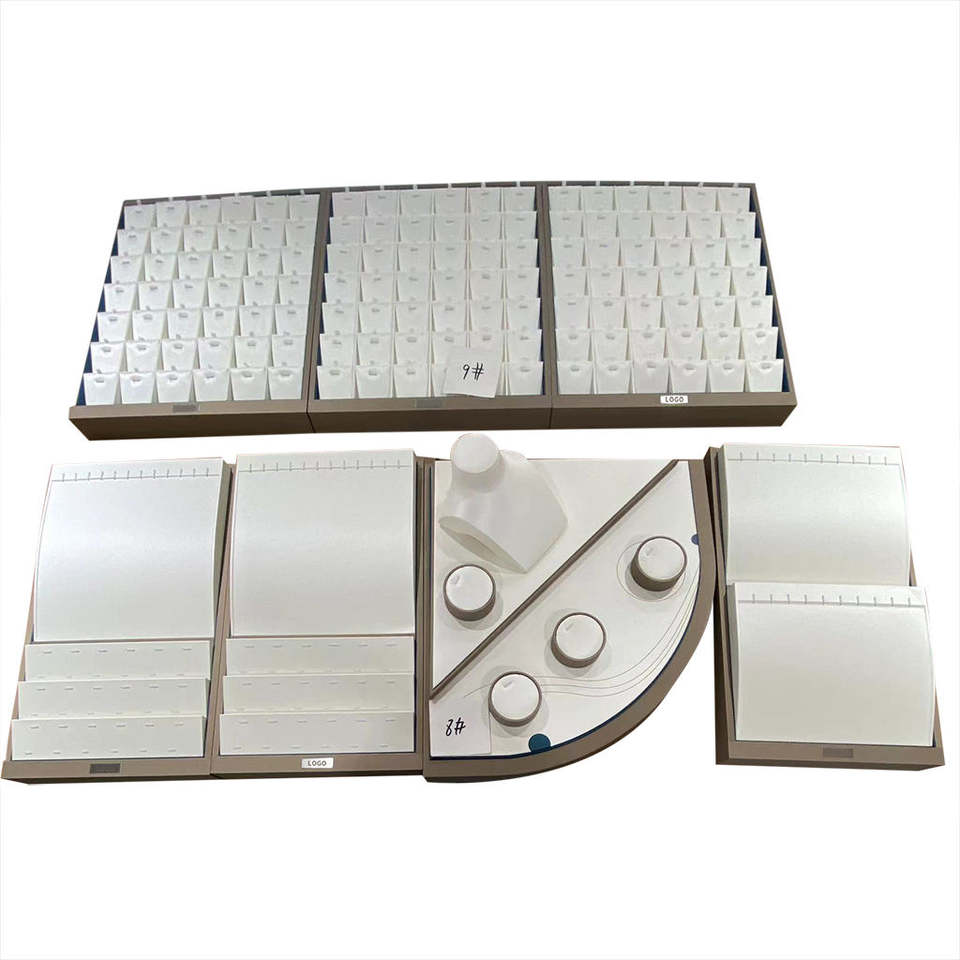Expositor de Joyería de Lujo en Cuero PU Blanco, Soporte Curvo para Collares y Colgantes con Bandeja para Exhibición en Tiendas