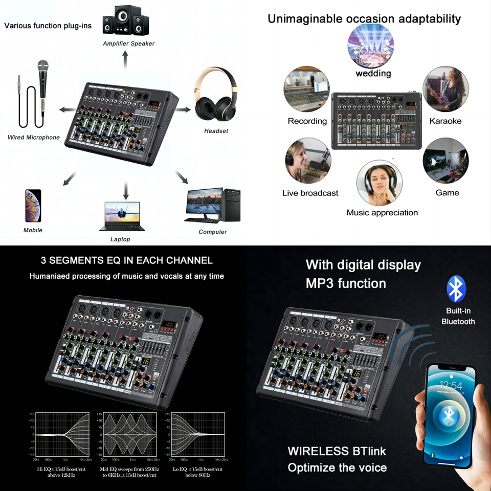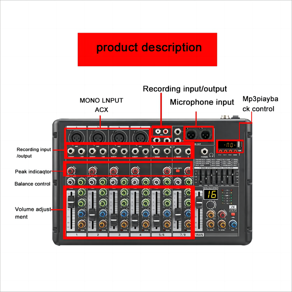 Demao RX8 mezclador de DJ mezclador de audio digital de 8 canales para YouTube