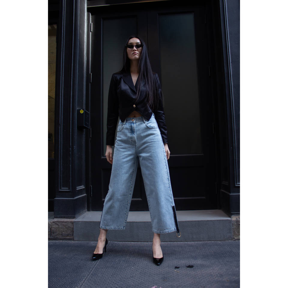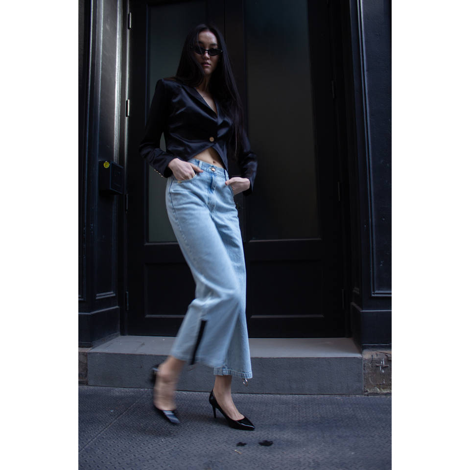 Jeans Demi de Corte Recto con Cierre Lateral