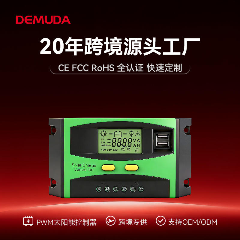 Controlador de Carga Solar Demuda 12V 24V 48V PWM 20A 30A con Pantalla y Puertos USB para Sistema de Paneles Solares