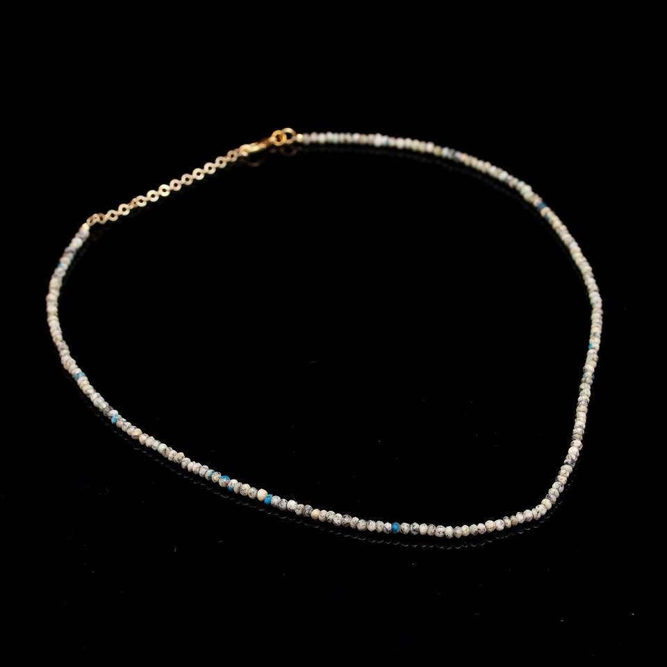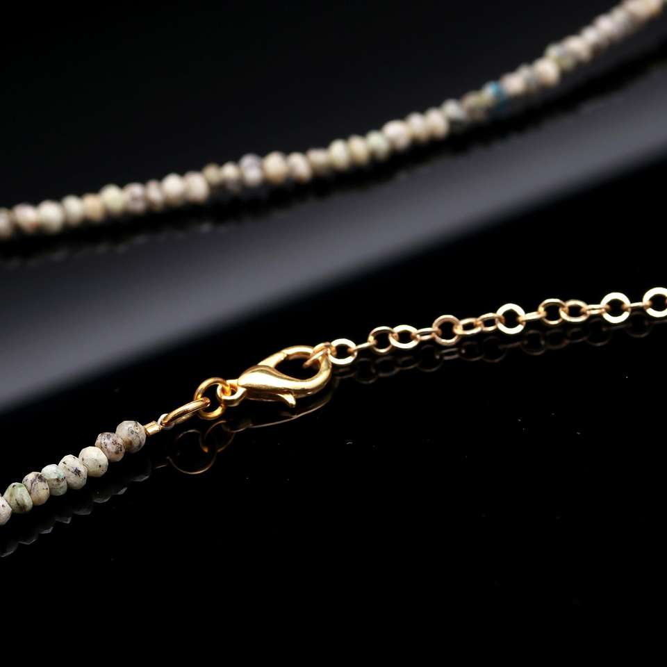 Collar de Perlas de Ópalo Dendrítico de 3.5-4mm, Forma Redonda, Chapado en Oro, Alta Calidad, Regalo Cristiano de Moda para Mujer