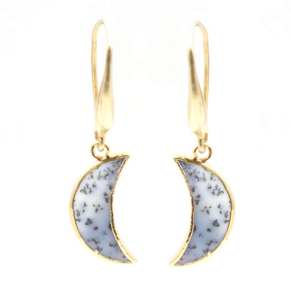 Product Name:Dendritic Opal Moon Shape Gold Electroplated Earring