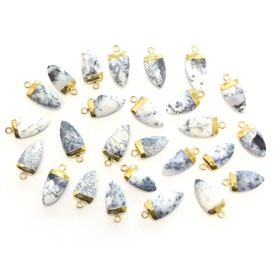 Nombre del Producto:Colgante de ópalo dendrítico con forma de media marquesa chapado en oro
