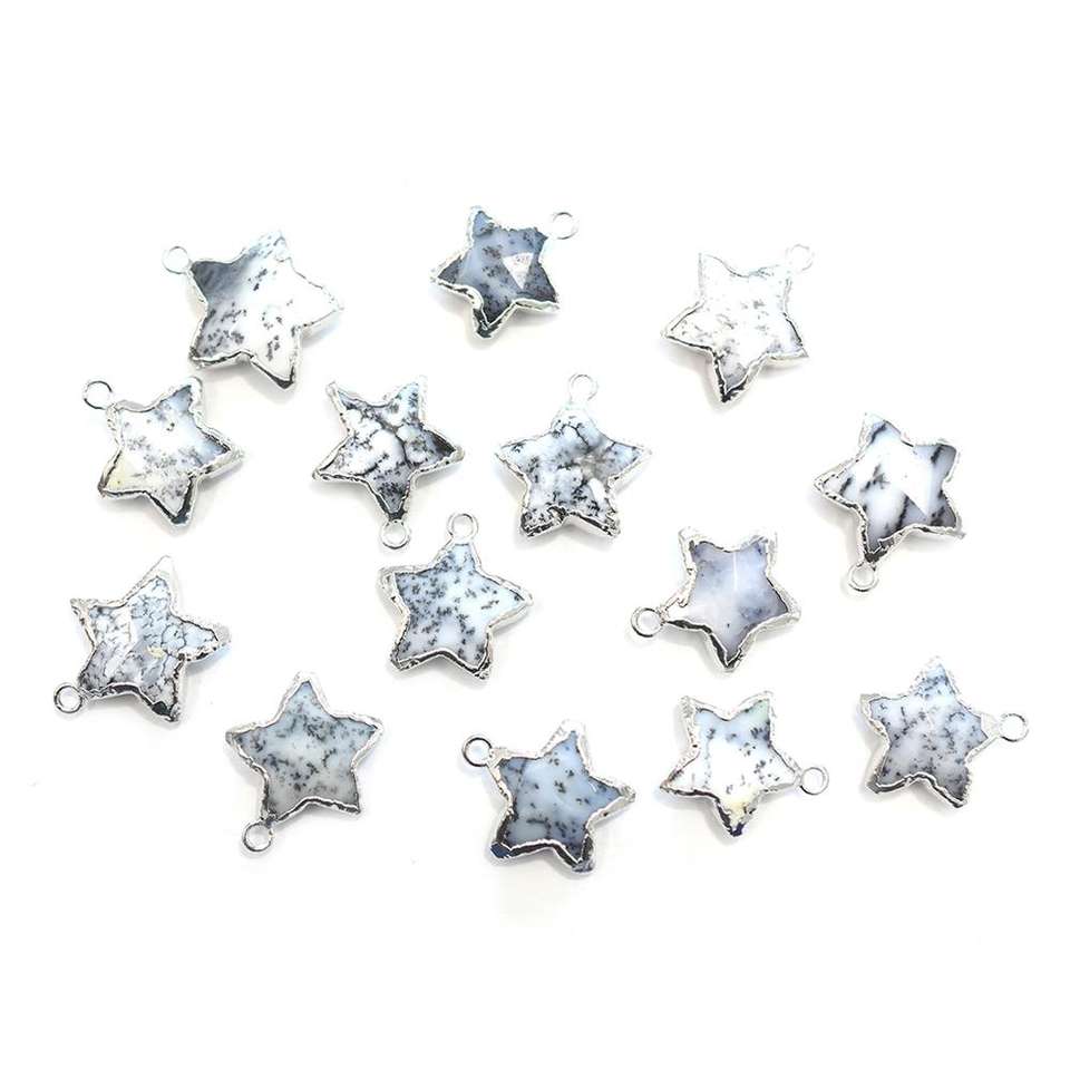Colgante de Ópalo Dendrítico de 14-16 mm, Piedra Facetada, Chapado en Plata, Forma de Estrella, Material de Latón con Argolla, Fábrica de Gemas de Jaipur