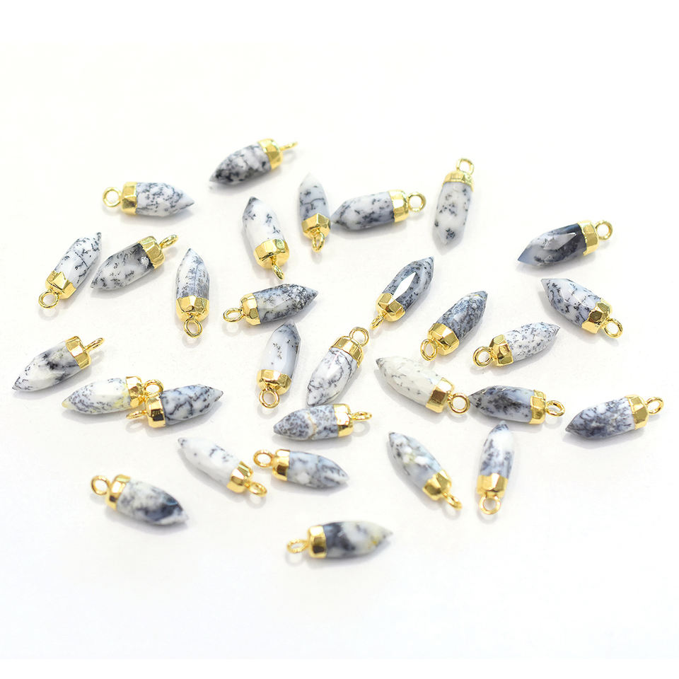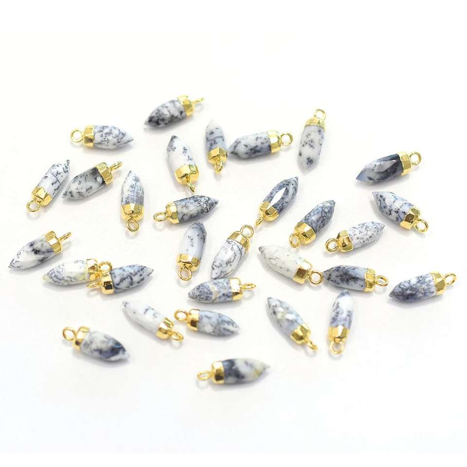 Nombre del producto::Colgante Chapado en Oro con Ópalo Dendrítico en Forma de Punta Pequeña