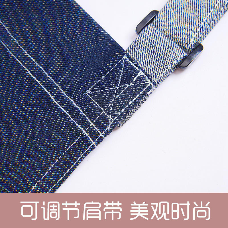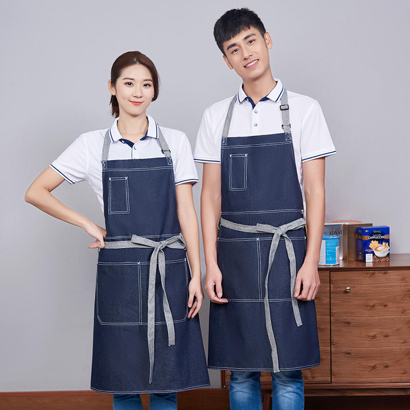 Delantal de cocina ajustable con cuello halter de mezclilla para restaurantes y bares, ropa de trabajo de poliéster azul