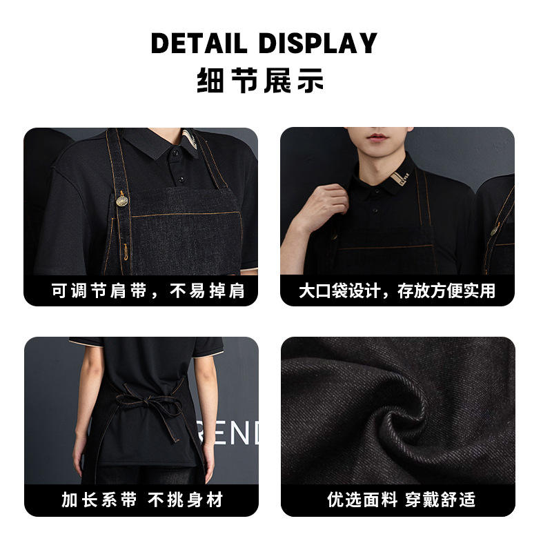 Delantal de mezclilla, uniforme de trabajo para cafeterías, tiendas de té con leche, restaurantes, panaderías, logotipo bordado impreso, poliéster, azul marino, negro