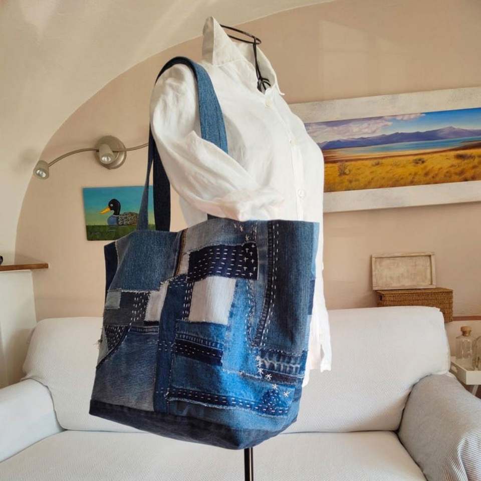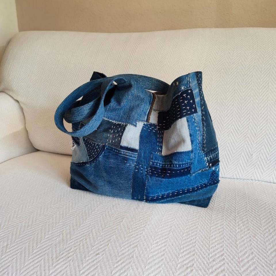 Bolso de Hombro de Mezclilla con Parches, Bolso de Mano Personalizado para Viaje, Moda Femenina, Bolso de Fin de Semana, Bolso de Playa, Compras, Verano, Otoño, Reciclado