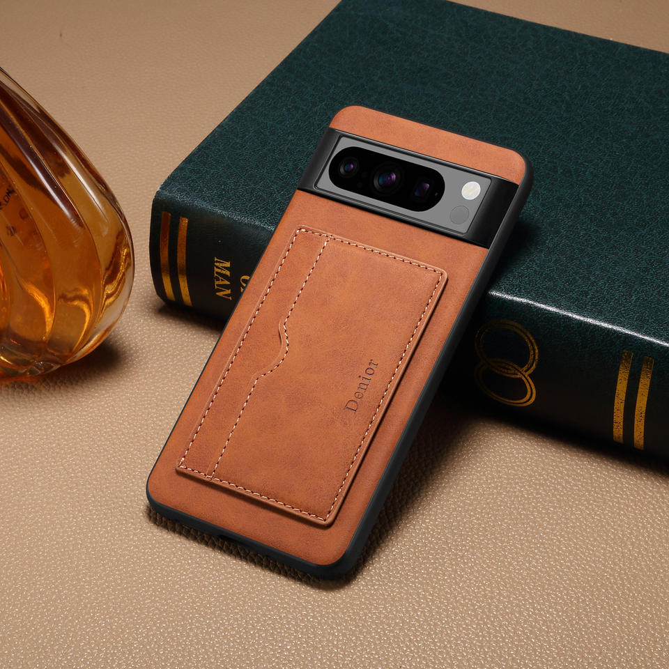 Denior | Funda de teléfono de cuero PU con inserción de tarjeta retro resistente a caídas para GOOGLE
