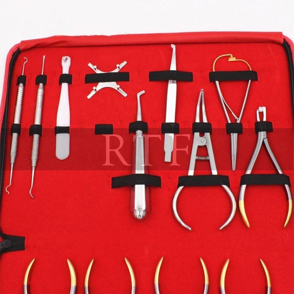 Juego de Instrumentos dentales básicos de ortodoncia, Kit compuesto manual de acero de 18 piezas