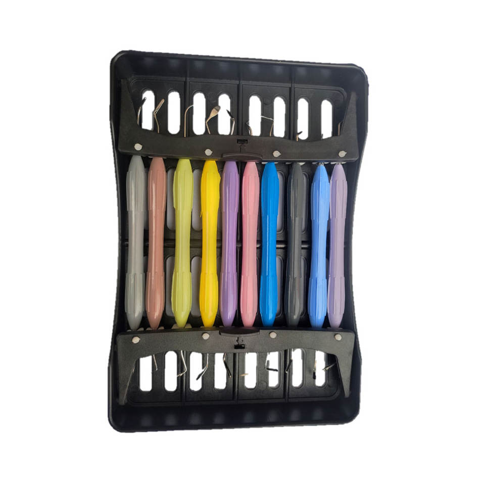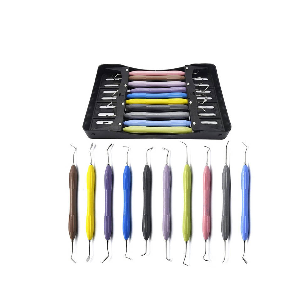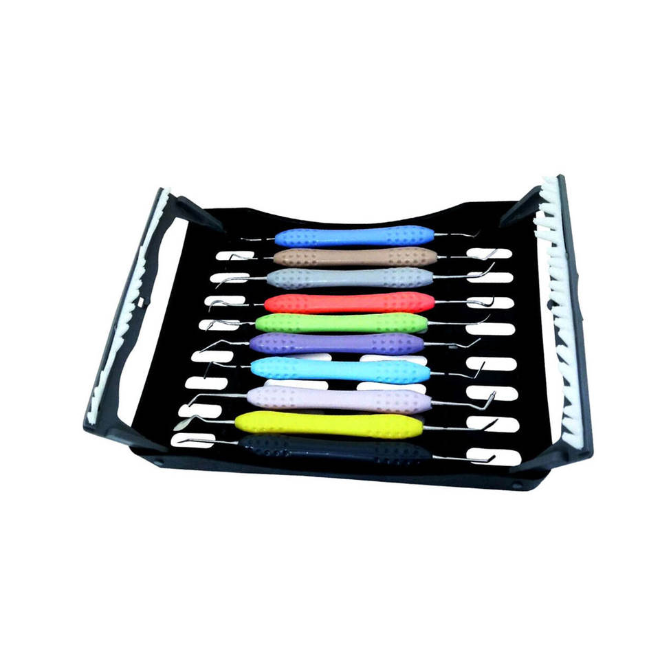 Instrumento de relleno compuesto Dental silicona multicolor restaurador 10 piezas Kit con bandeja de plástico instrumentos quirúrgicos dentales