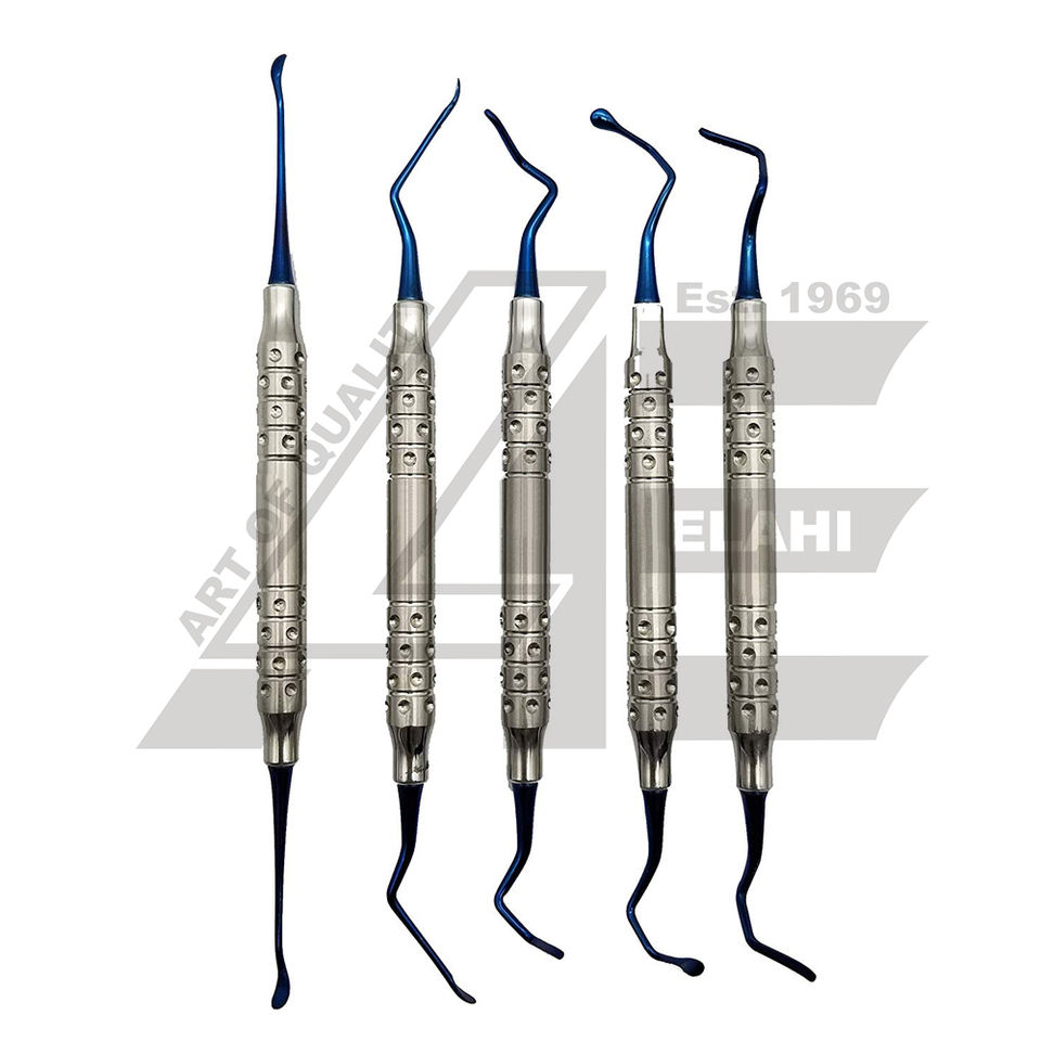 Kit de Instrumentos Dentales para Rellenos de Composite (6 Piezas, Recubrimiento de Plasma Azul) Herramientas Restauradoras en Caja de Acero Inoxidable