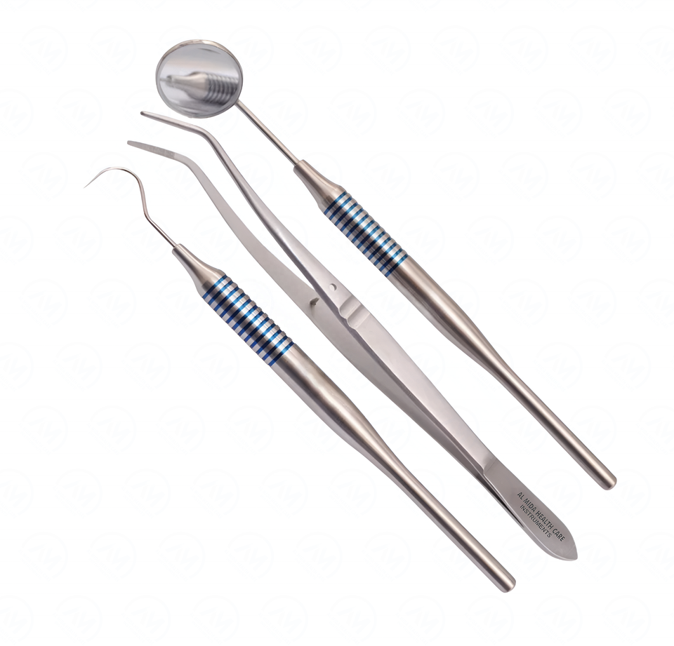 Nombre del producto:Set de Examen Dental de 3 piezas con Espejo, Explorador y Pinzas