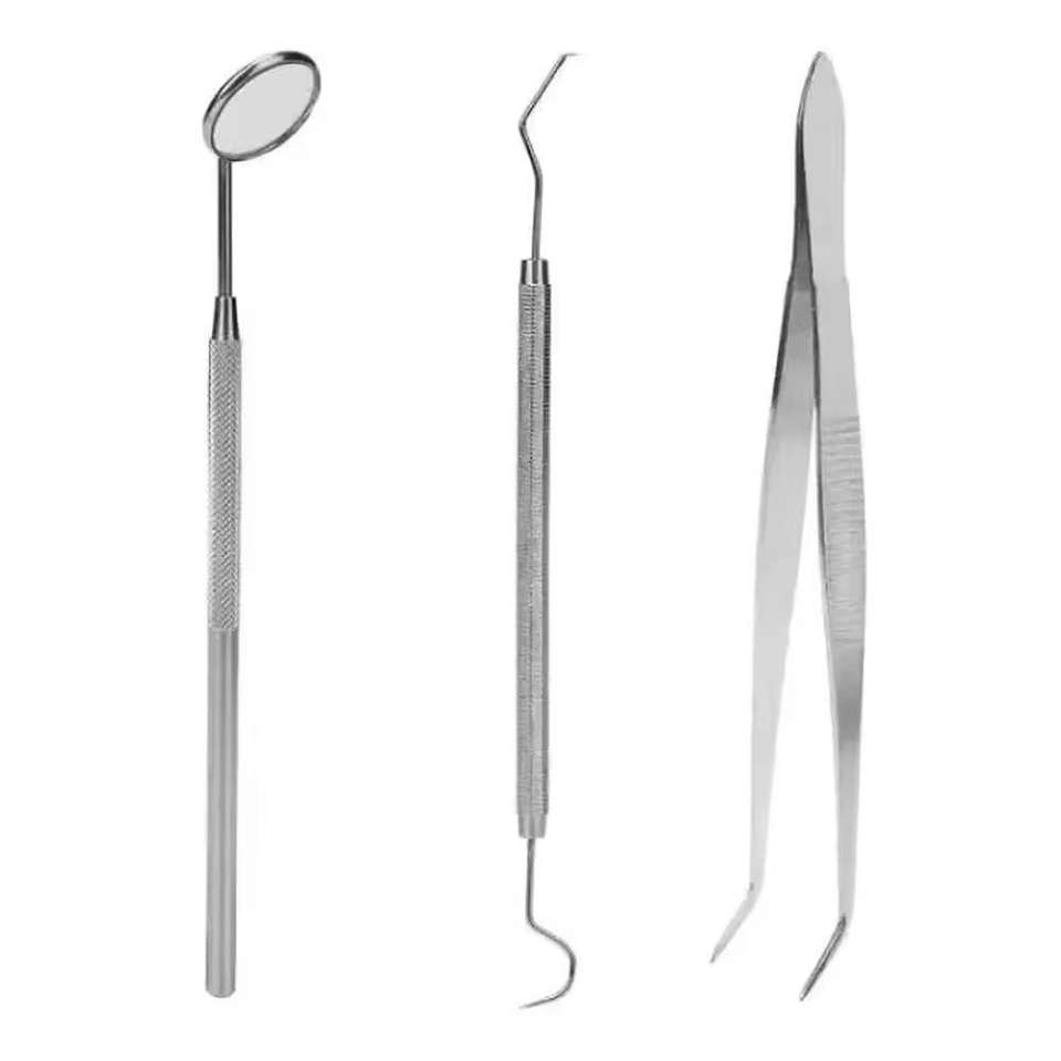 Kit de Exploración Dental y Set de Diagnóstico Básico (3 Piezas) Instrumentos Manuales de Acero Inoxidable con Empuñadura Ergonómica Clase I