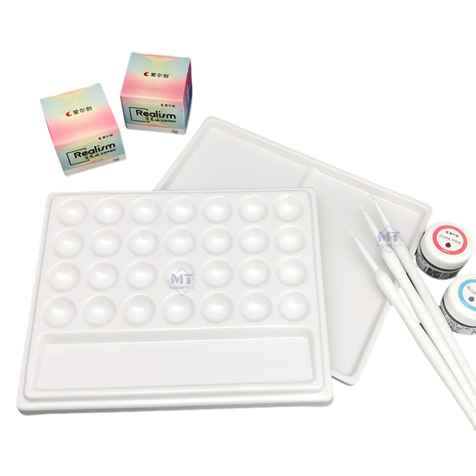 Material acrílico de porcelana para laboratorio Dental, mezcla de riego, placa hidratante, paleta de cerámica de 28 ranuras