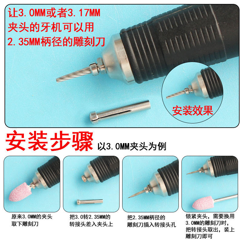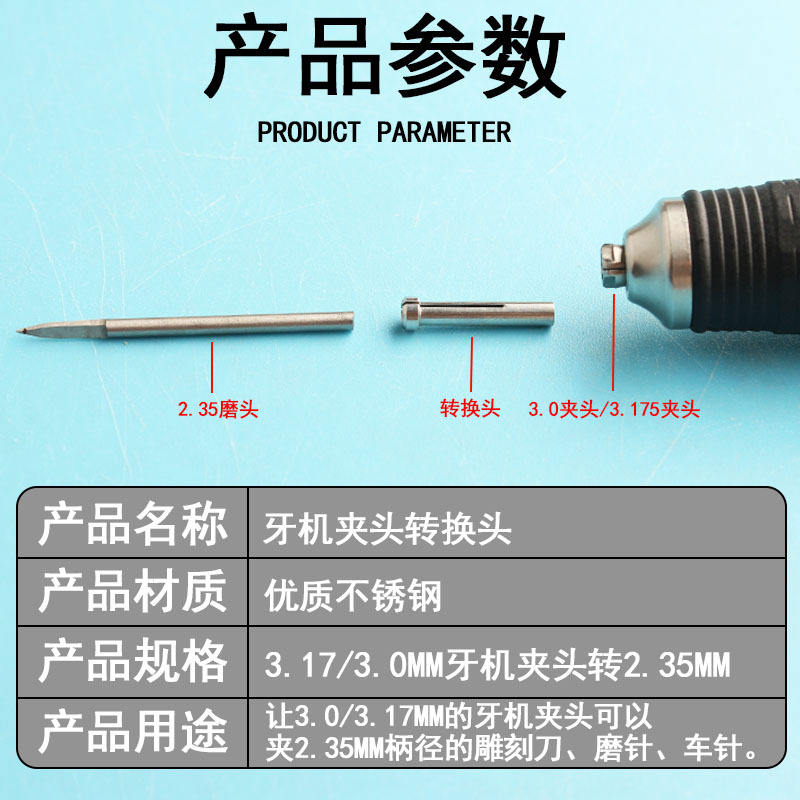 Adaptador de cabezal para máquina dental de 3.0/3.17 a 2.35 mm, componente de rodamiento de acero inoxidable de níquel-cromo