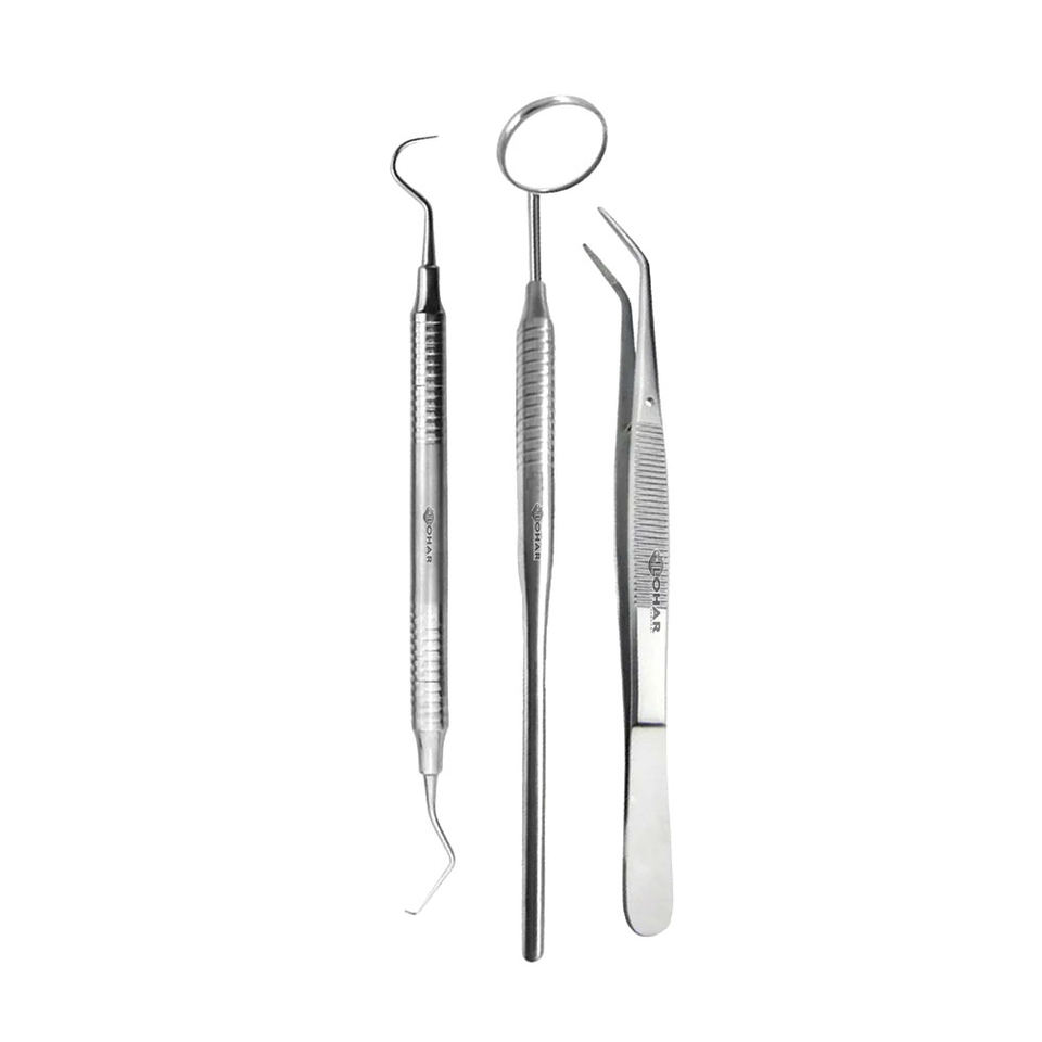 Juego de examen de instrumentos de Cirugía Dental de 3 piezas de espejo bucal con mango, Explorers 17/16 ,Explorers 23/16, alicates universitarios