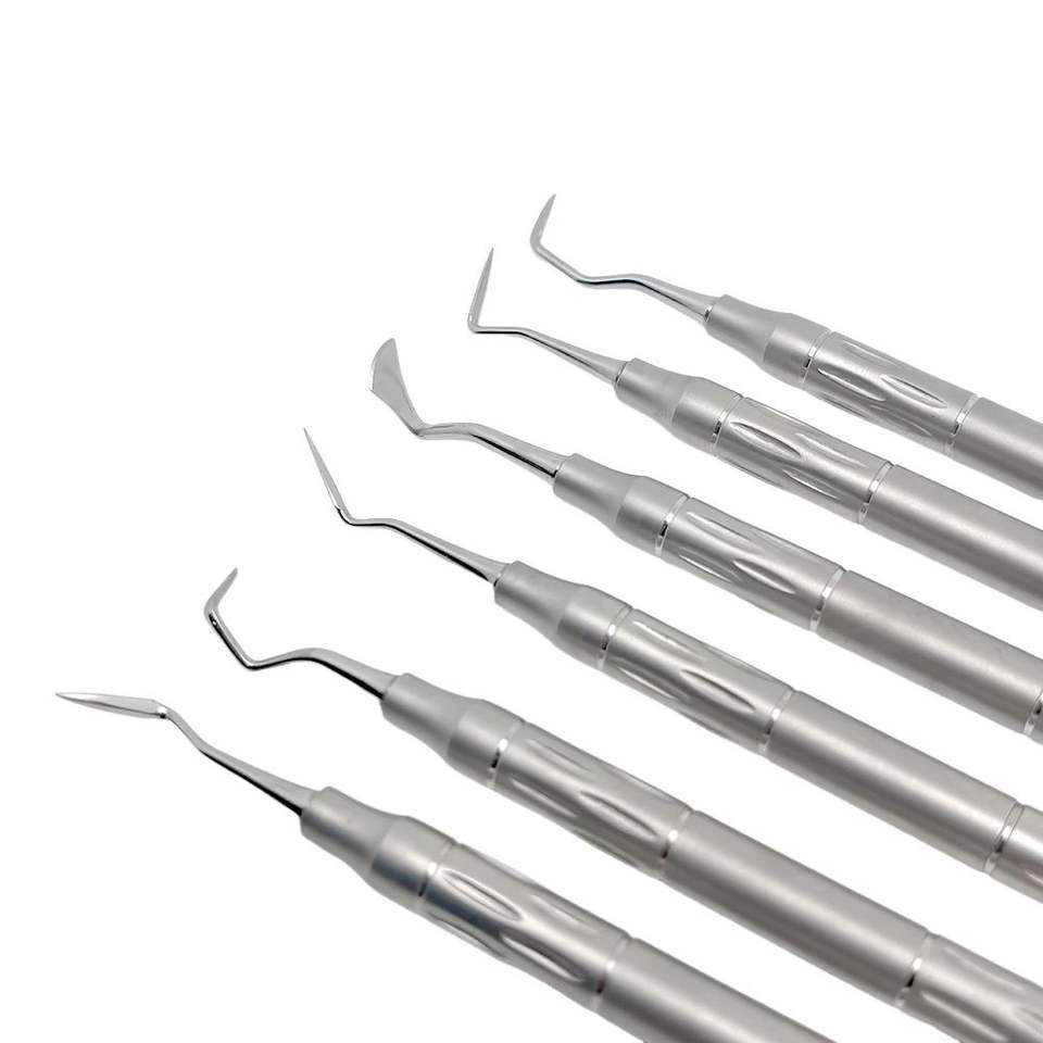 Instrumentos de Cirugía Dental, 6 Piezas de Alta Calidad en Acero Inoxidable, Herramienta Manual para Limpiar Implantes y Huesos, Narham Enterprises