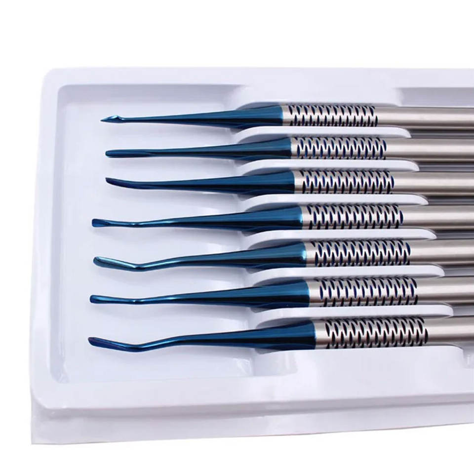 Instrumentos Quirúrgicos Dentales, Juego de 7 Piezas, Elevadores de Raíces para Implantes Dentales, Extractor de Dientes y Huesos, Titanio