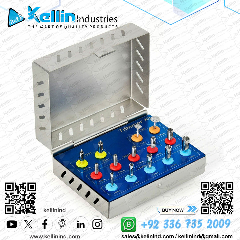 Especificación:Dental Trimmer Set Of 14 Pieces Bone Implant Grafting Tissue Guide Punch Trephines Saw Disk