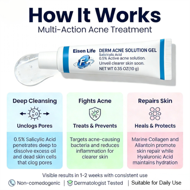 Gel Derm Acne Solution que promueve la curación del acné, antibacteriano y antiinflamatorio preciso para reducir las cicatrices del acné