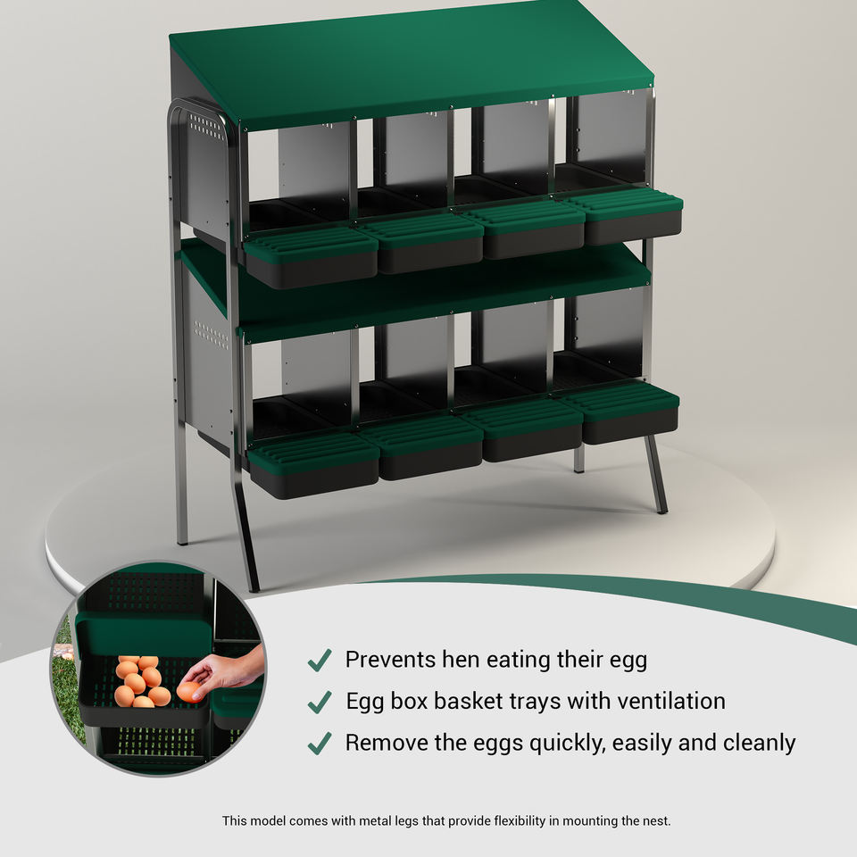 Nido de Acero Galvanizado de Doble Fila Des Champs MG04D-L: Ocho Compartimentos para hasta 40 Pollos