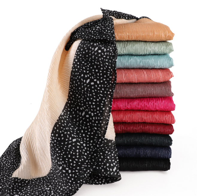 Diseño de hijab musulmán con doble capa fija y lazos, pañuelo de doble cara para mujeres, chales de tela bordada.