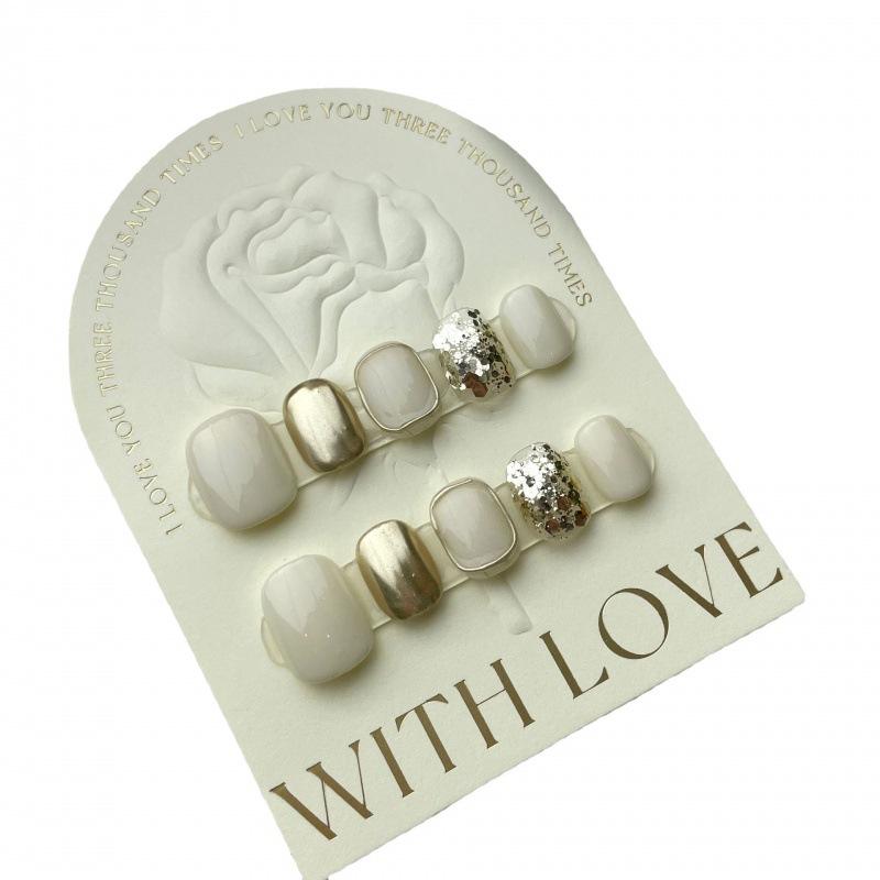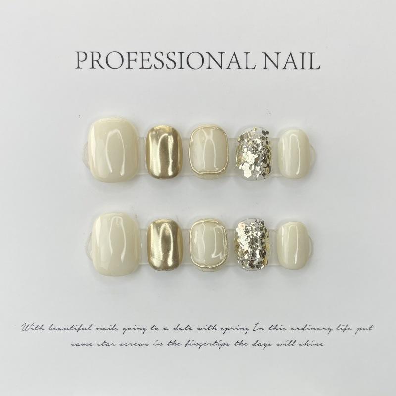 Diseño #624, venta al por mayor, 10 Uds., brillo de cristal Beige, cubierta completa corta, puntas de uñas hechas a mano, prensa acrílica hecha a mano en las uñas
