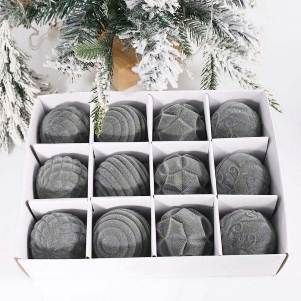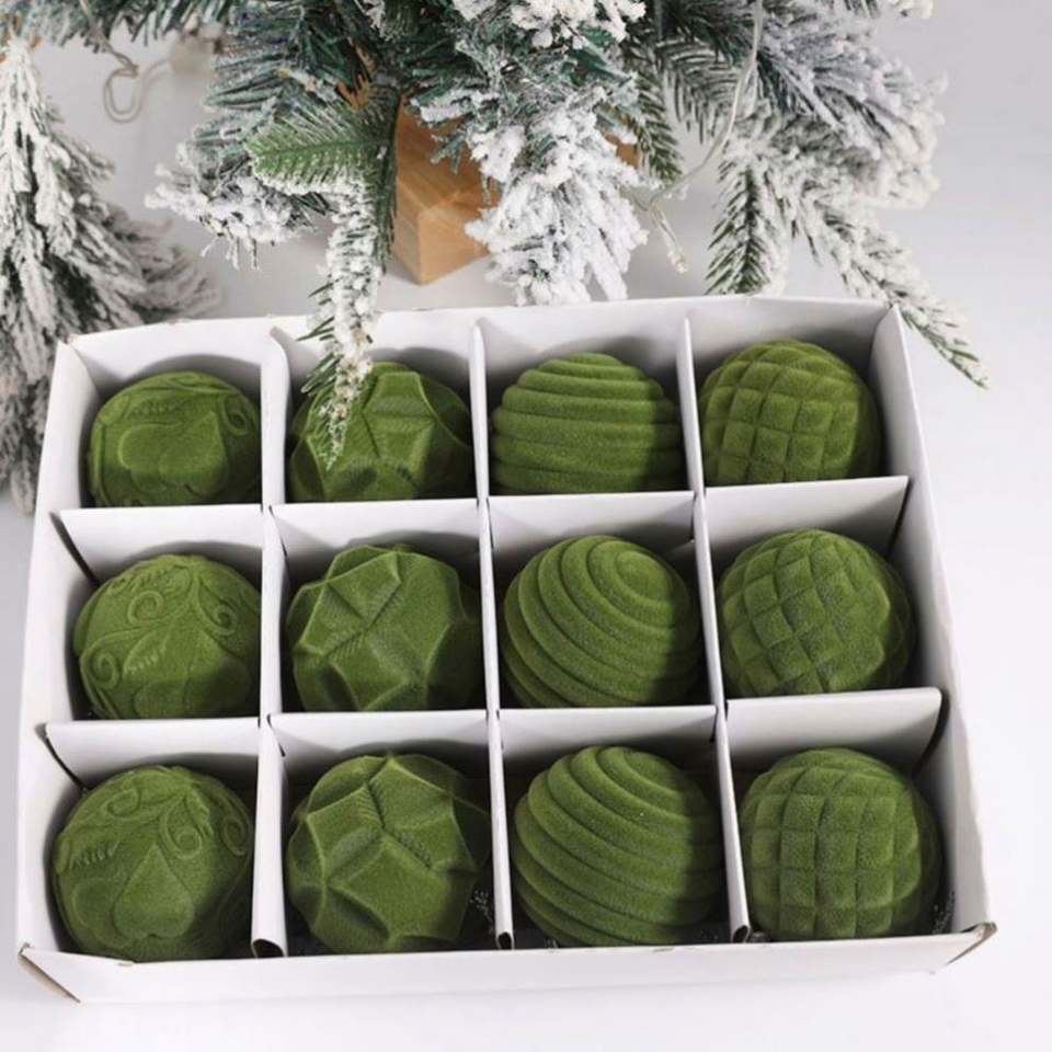 Bolas de Navidad de Terciopelo de Lujo de 6 cm con Diseño Especial en Rojo, Verde y Gris, Adornos Navideños