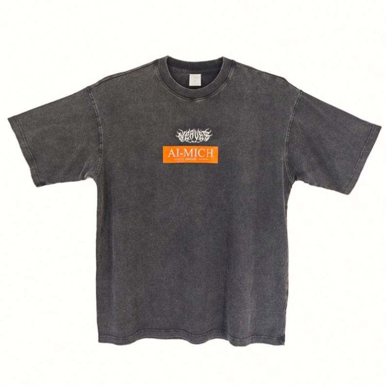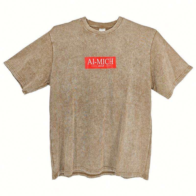 Camisetas de diseño con lavado ácido, logotipo personalizable impreso, estilo básico, 100% algodón, lavado a la piedra, manga corta, venta al por mayor, 260 gramos, tejido de punto