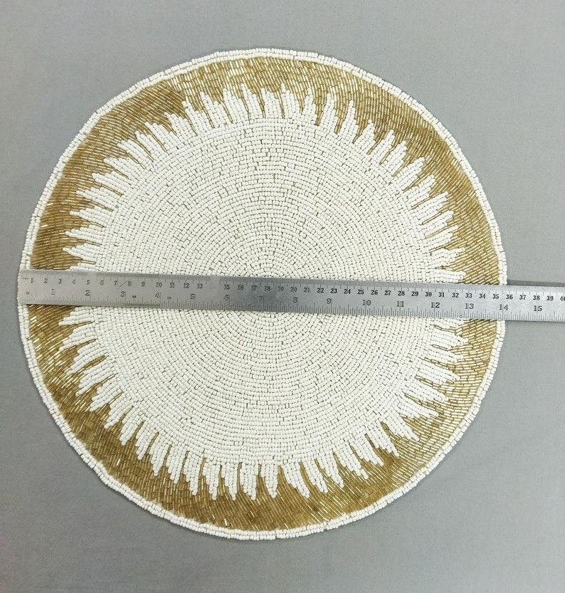Manteles Individuales Redondos Blancos con Diseño de Cuentas, Manteles Individuales para Mesa de Comedor, Diseño 3D, Manteles Individuales Redondos Blancos con Cuentas