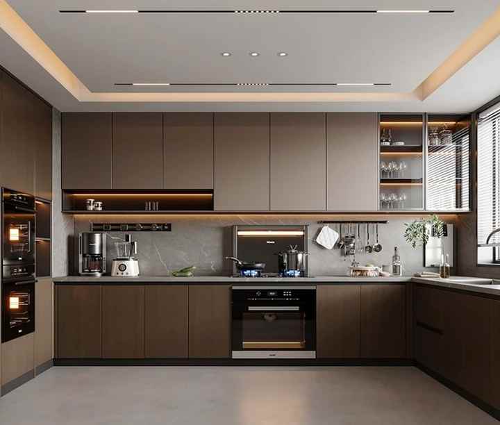 Mueble de Cocina Contemporáneo de Madera Lacada, Armario de Cocina de Madera Contrachapada, Almacenamiento para Cocina de Apartamento