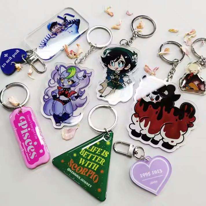 Llavero de acrílico personalizado con diseño animado, impreso por ambos lados, transparente