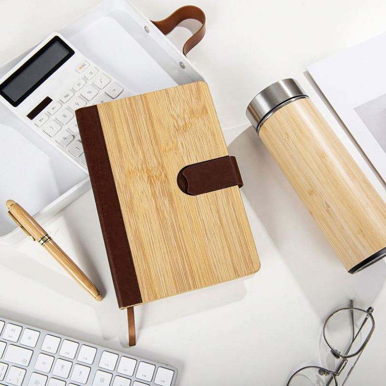 Set de Regalo Corporativo con Logotipo Personalizado, Bolígrafo de Bambú Ecológico, Taza Ecológica, Cuaderno A5, Taza Aislada