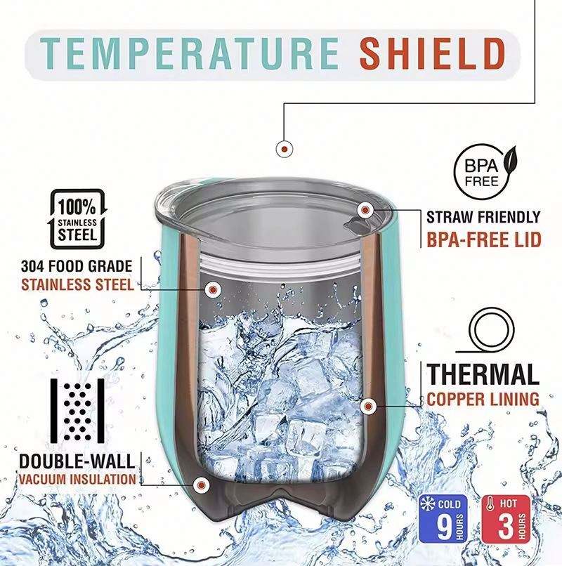 Vaso Térmico Personalizado con Logotipo, de Acero Inoxidable de 12 oz, con Recubrimiento en Polvo, Sublimado, en Forma de Huevo, para Café, Vino