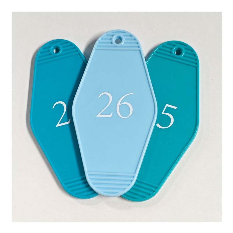 Design Custom Logo Keychain Classic Vintage Hotel and Motel Sign Acrylic Plastic with Zinc Alloy Metal for Numbers Anime Style