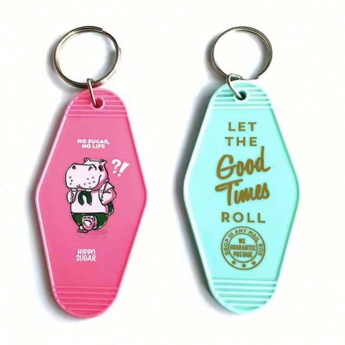 Design Custom Logo Keychain Vintage Plastic Junk Motel Key Ring with UV Printing Cartoon Anime Style