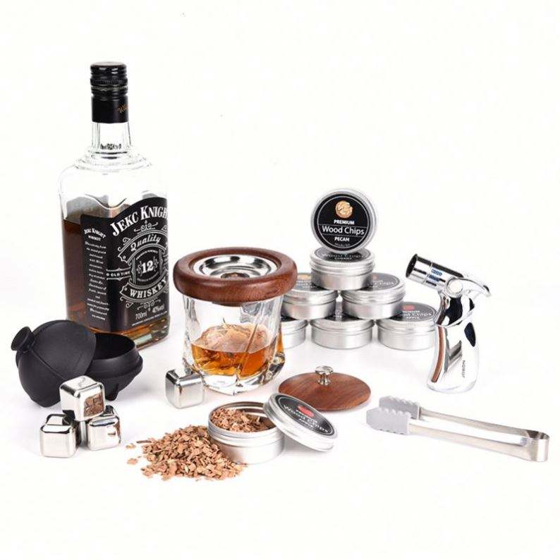 Kit de Ahumador de Whisky con Logotipo Personalizado | Juego de Pistola de Ahumado Portátil de Acero Inoxidable | Regalo de Cócteles de Lujo para Clientes Corporativos