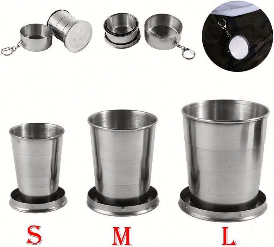 Vaso de Agua Plegable Telescópico Portátil de Acero Inoxidable con Llavero, Diseño Personalizado con Logotipo, Económico